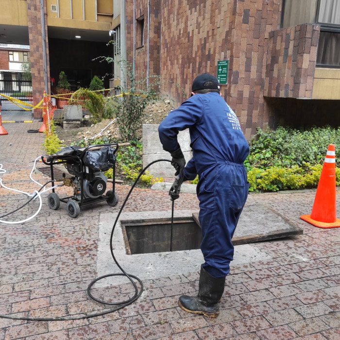 Servicio de sonda Hidrojet con misil de agua alta presión de agua.